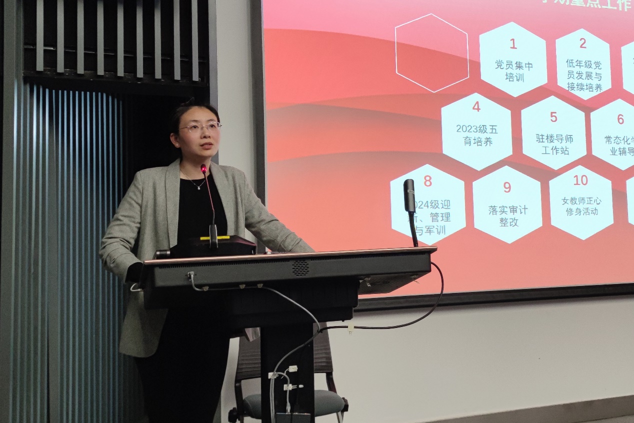 方雅静通报2024春季学期学生思想动态调研结果。会议结合近期学生对学校工作的关注与期待、学生成长发展困惑及自我管理等情况,对相关问题进行研判并提出建议和措施。会议同时对本学期党员集中培训、低年级党员发展与接续培养、2023级学生五育培养、驻楼导师工作站、常态化学业辅导、心理工作、2024级迎新、军训工作、妇女工作及廉洁教育和风险防控等工作进行部署。