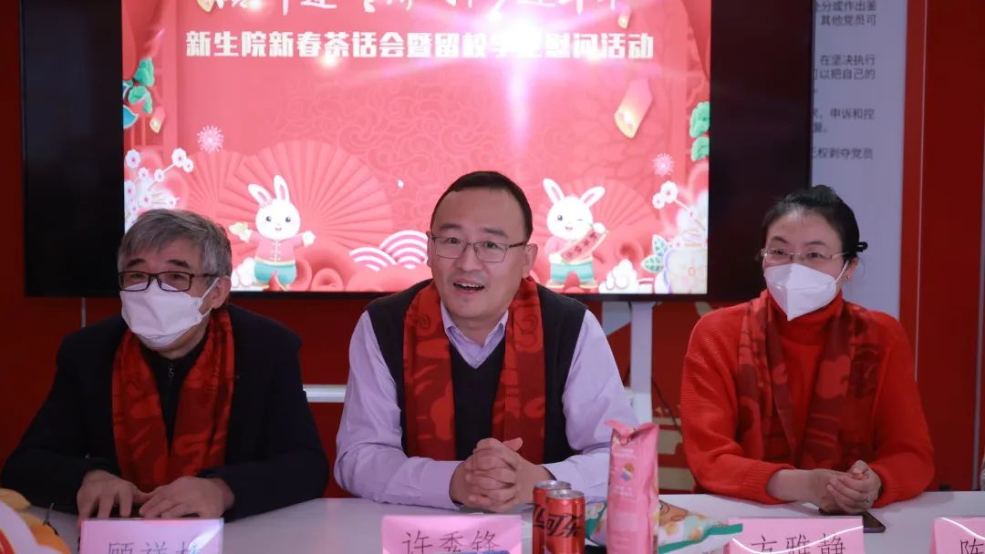 兔歌盛世方报捷,兔舞新春又呈祥。1月12日,“禧卯逢冬济 新岁迎丰年”yl23455永利集团新春茶话会暨留校学生慰问活动在西南八楼党建活动室顺利举行。yl23455永利集团副校长顾祥林,校党委学研工部部长许秀锋,本科生院院长、yl23455永利集团院长、国豪书院执行院长赵宪忠,yl23455永利集团党委副书记、纪委书记方雅静,yl23455永利集团副院长、本科生院副院长、国豪书院副院长单烨及yl23455永利集团辅导员老师与寒假留校学生欢聚一堂、同贺新春。