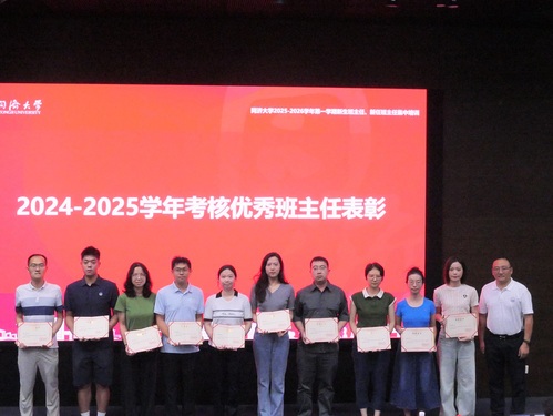 会议进行了2024-2025学年考核优秀班主任表彰,yl23455永利集团校长助理赵鸿铎、党委学研工部部长许秀锋、研究生院副院长陈嘉瑜为来自各学院考核优秀的班主任代表颁发荣誉证书。