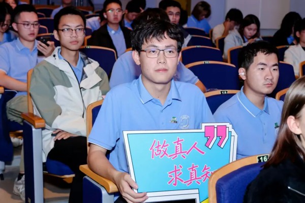 中国科学院院士、同和学堂院长汪品先致辞。他指出,人生轨迹中大的转折往往一辈子都忘不了,把握好这些大变化关键在自己。大学不仅是学习知识的场所,更是个人蜕变与成长的关键时期。他向新生们提出了两点殷切期望:一是要珍惜时间,二是要独立思考,避免盲从。汪院士勉励新生“说真话,求真理,做真人”,谨记“德育崇尚信仰,科学贵在怀疑”。最后,汪院士表达了对新生的真挚祝福:志存高远,前程似锦!