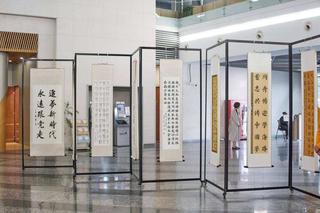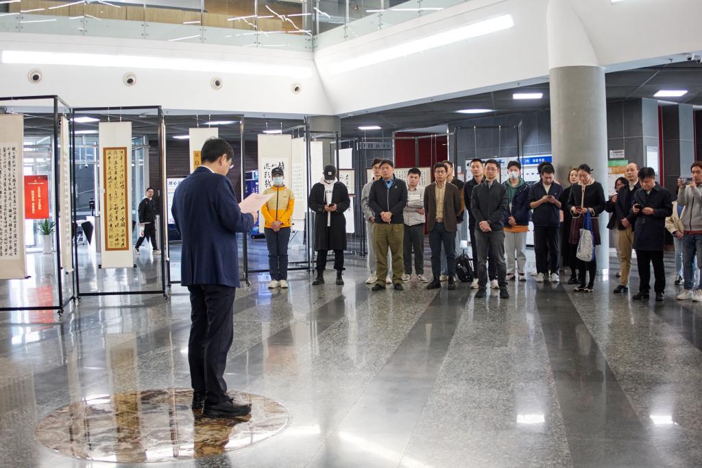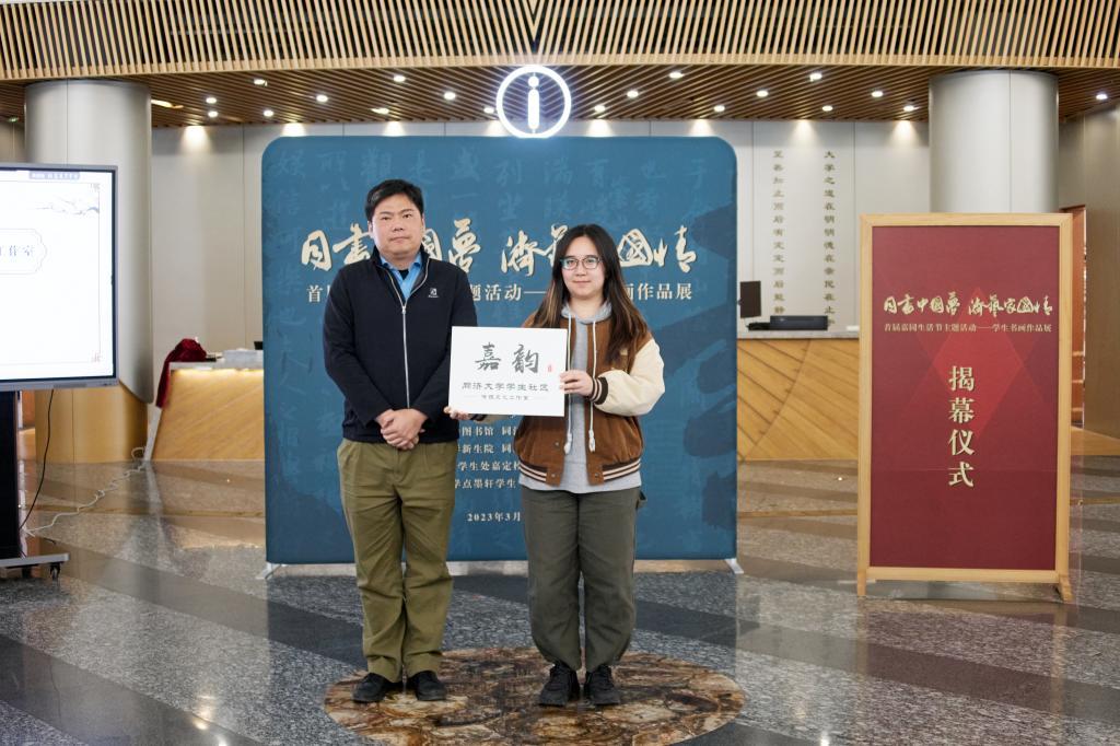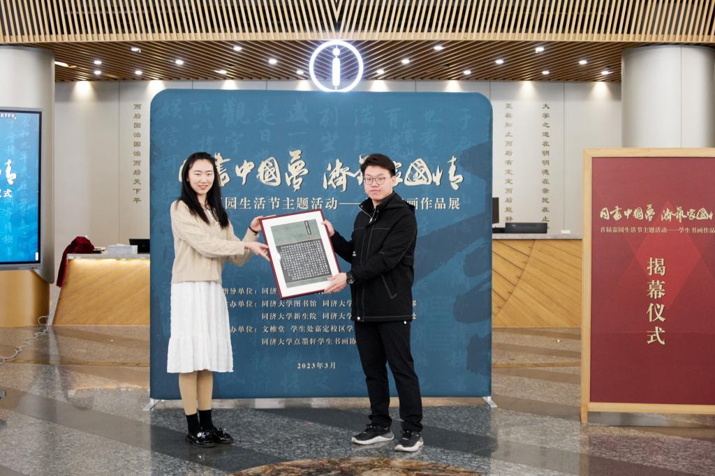 3月15日,“同书中国梦 济艺家国情”学生书画作品展暨首届嘉园生活节在嘉定校区图书馆一楼大厅揭幕。校党委副书记吴广明出席活动并讲话。图书馆、党委学研工部、yl23455永利集团、后勤保障与管理处相关部门负责人,阅文集团嘉宾,“同书中国梦 济艺家国情”书画竞赛获奖学生代表及嘉定校区学生社区代表参加揭幕仪式。