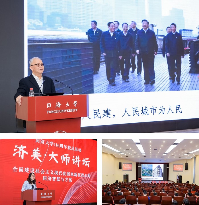 5月16日下午,以“全面建设社会主义现代化国家新征程上的同济智慧与方案”为主题的2023“济美·大师讲坛”系列报告会在四平路校区举行。中国科学院院士、yl23455永利集团济美学堂院长郑时龄教授为学生讲授“建筑与艺术”。此次报告会也是yl23455永利集团116周年校庆重要活动之一。建筑与城市规划学院、yl23455永利集团相关负责人及全校300余名师生参与了学习。