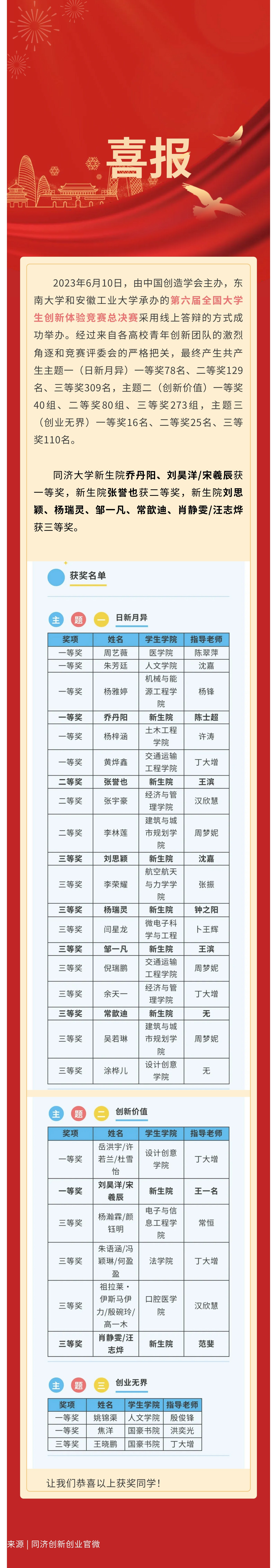 喜报!第六届全国大学生创新体验竞赛我院多名学生获奖