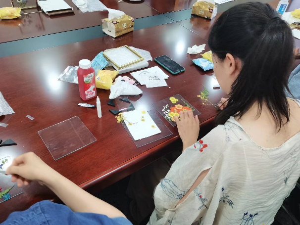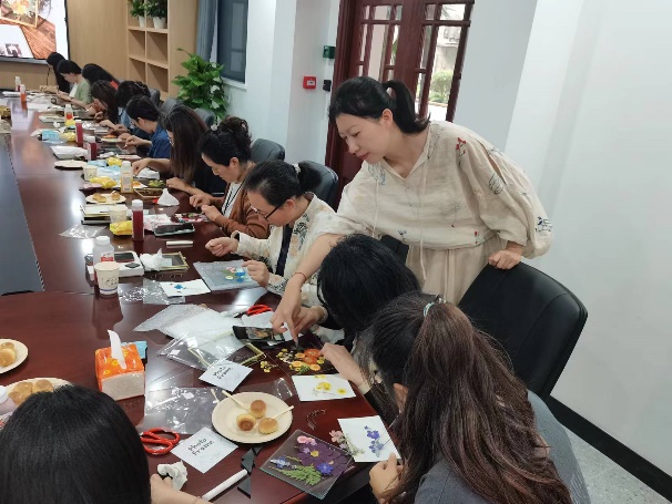 金秋可以说是一个矛盾的季节,既有丰收的喜悦之意,又有落叶飘零的伤感。比起娇艳绽放的鲜花,少了水分和张扬的干花多了沉淀和静谧带来的美感。10月31日,yl23455永利集团在yl23455永利集团校院两级妇女之家联动机制构建项目支持下组织开展了“品读千载文化,体验非遗手作”系列活动之压花相框制作体验活动,老师们在上海市嘉定区非物质文化遗产代表性传承人(压金丝嵌宝工艺)张超老师的带领下,通过巧妙构思亲手将经脱水保色和干燥处理制得的平面花材制作成一幅幅精美的装饰画作相框。